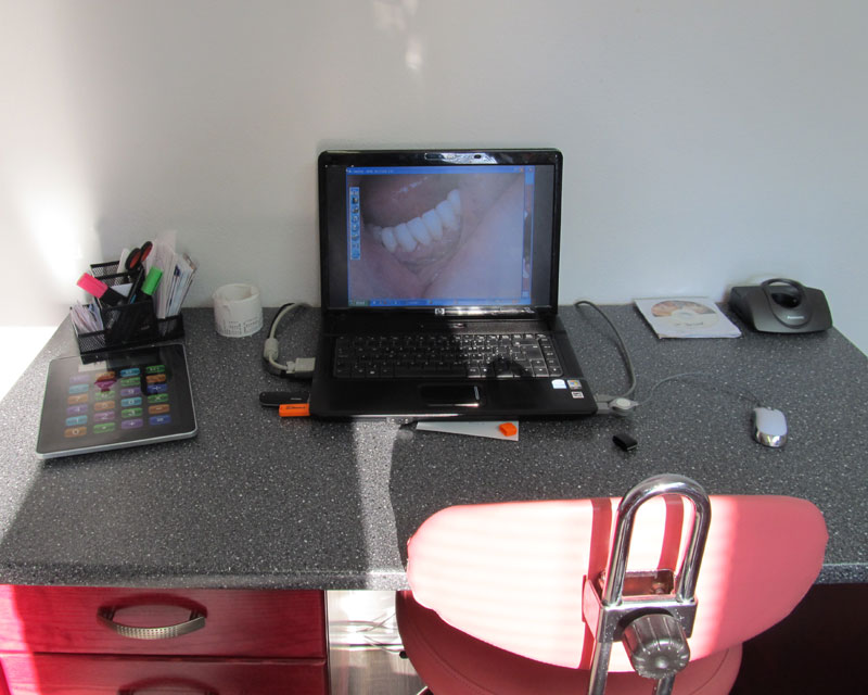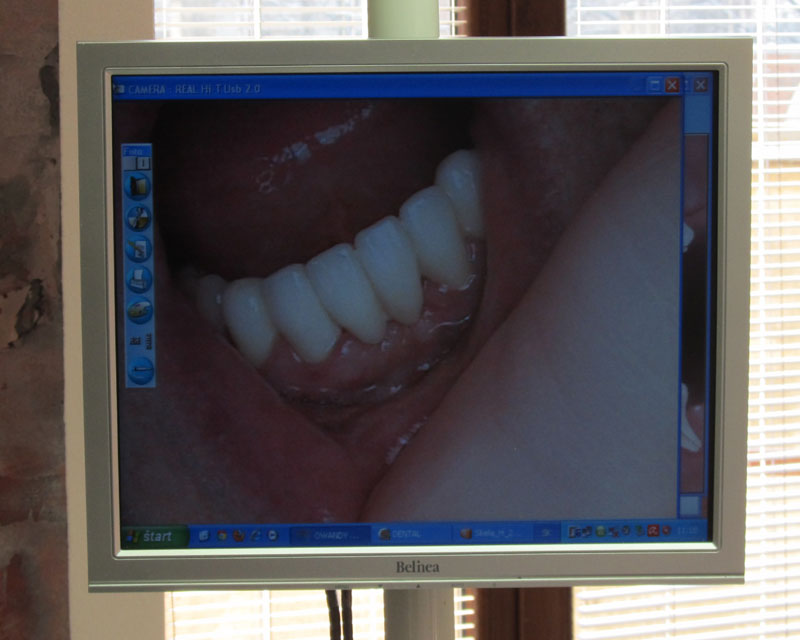 fotodokumentácia stavu a priebehu ošetrenia pomocou digitálnej intraorálnej kamery, možnosť sledovania a spätnej kontroly ošetrenia pacientom na LCD monitore.